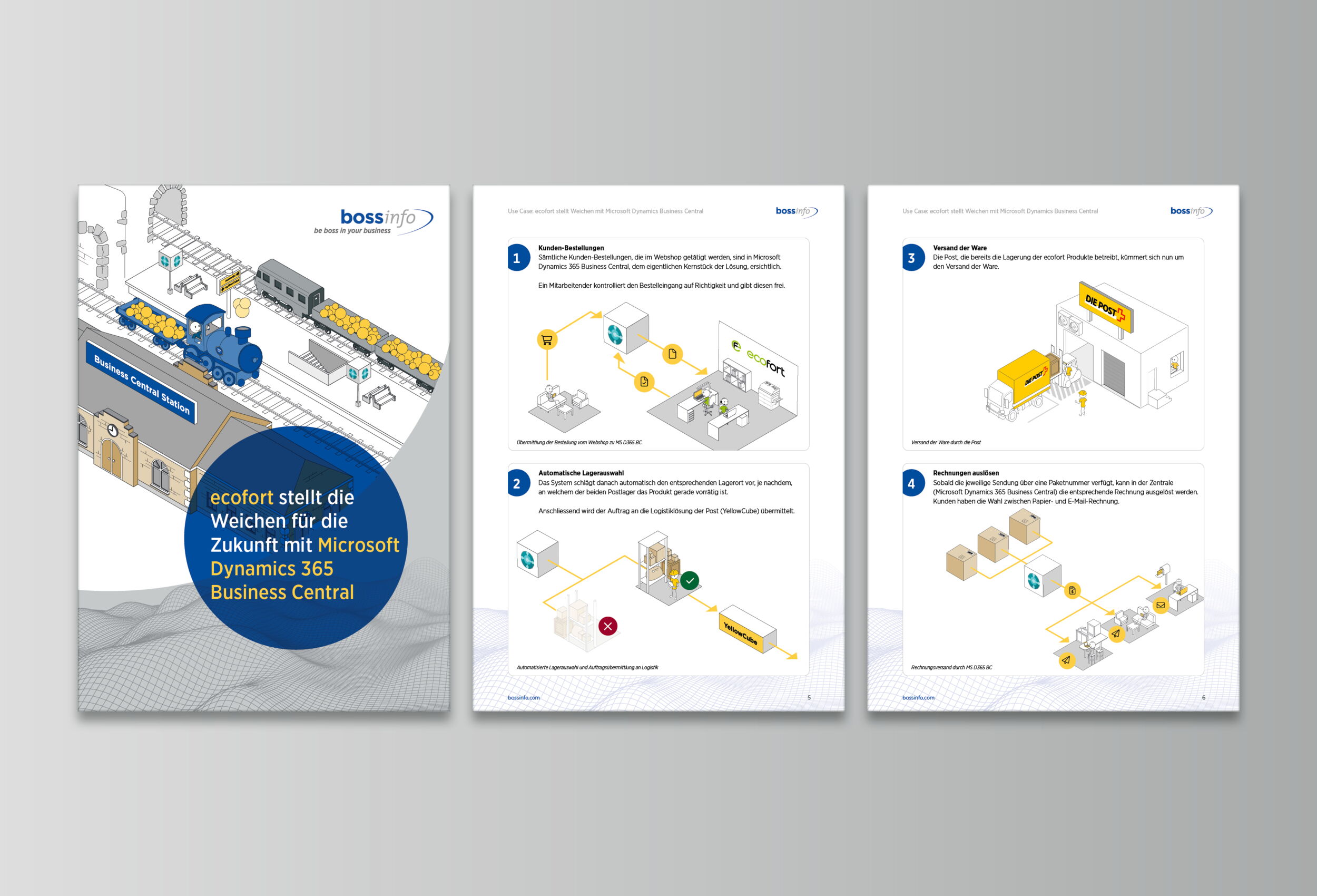 Mit den Boss Info Friends konnten auch komplexere Use Cases erklärt werden. Storyboard und Illustrationen sind von mir. Animation durch Drittperson.