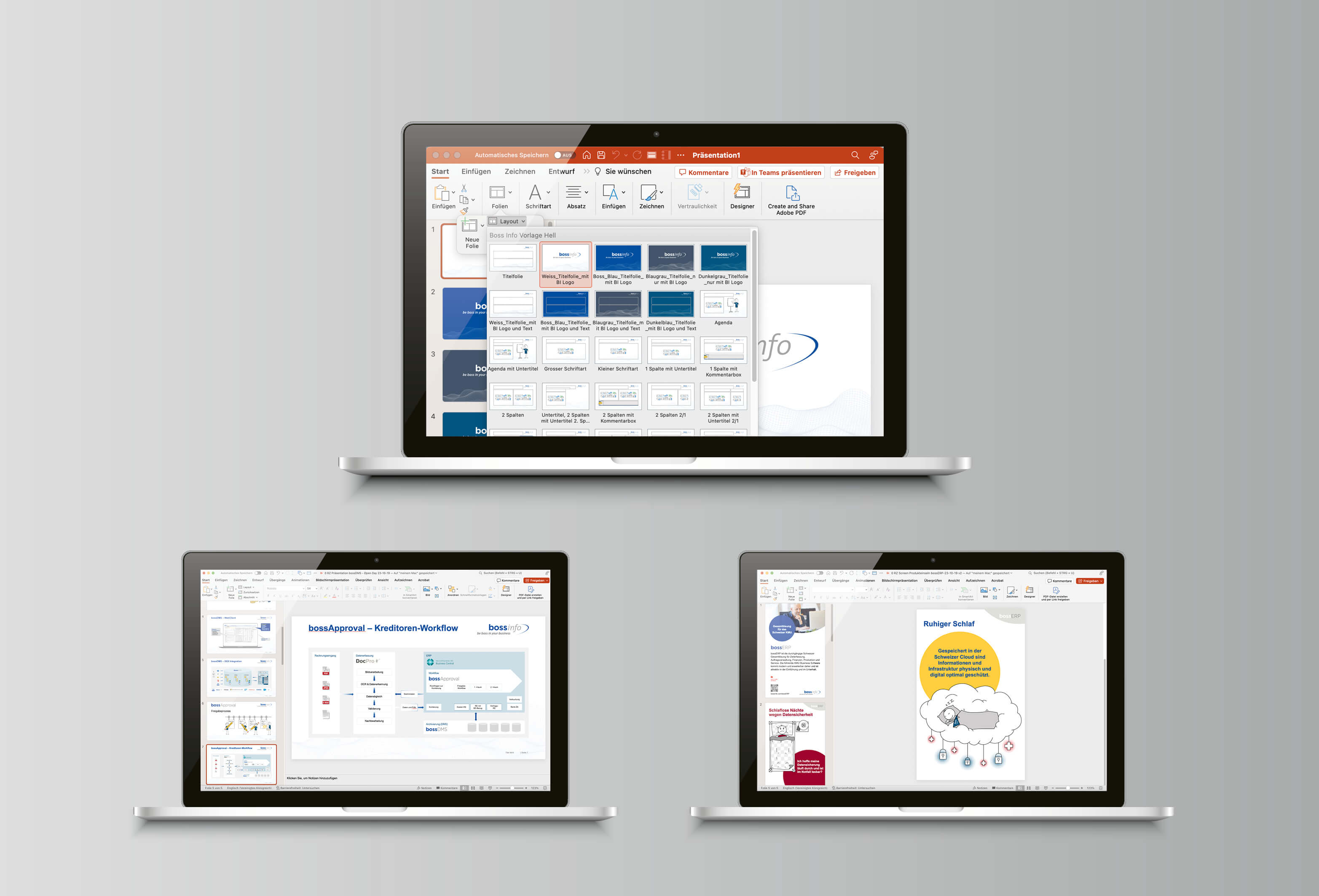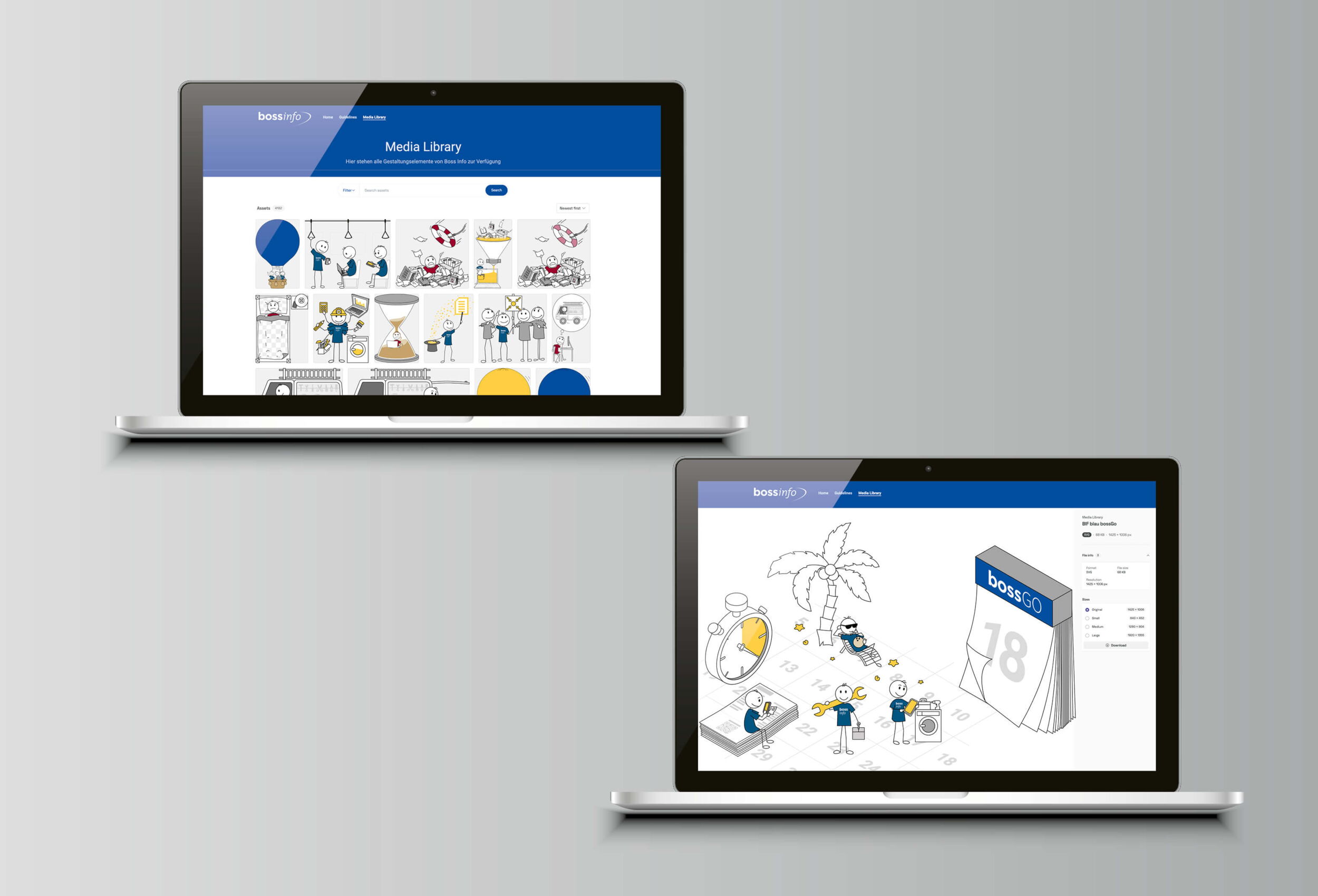In meiner Rolle als Design & Branding Managerin bei Boss Info habe ich das bestehende Corporate Design weiterentwickelt und dessen Einsatz im Print- und Digitalbereich definiert. Dazu habe ich einen umfassenden Branding Guide in Frontify aufgebaut, der unter anderem auch die von mir erstellten PowerPoint- und Word-Vorlagen für alle Mitarbeitenden umfasst. Ausserdem habe ich eine Medienbibliothek geschaffen, die über 1000 eigene Illustrationen sowie mehr als 100 Animationen beinhaltet.
