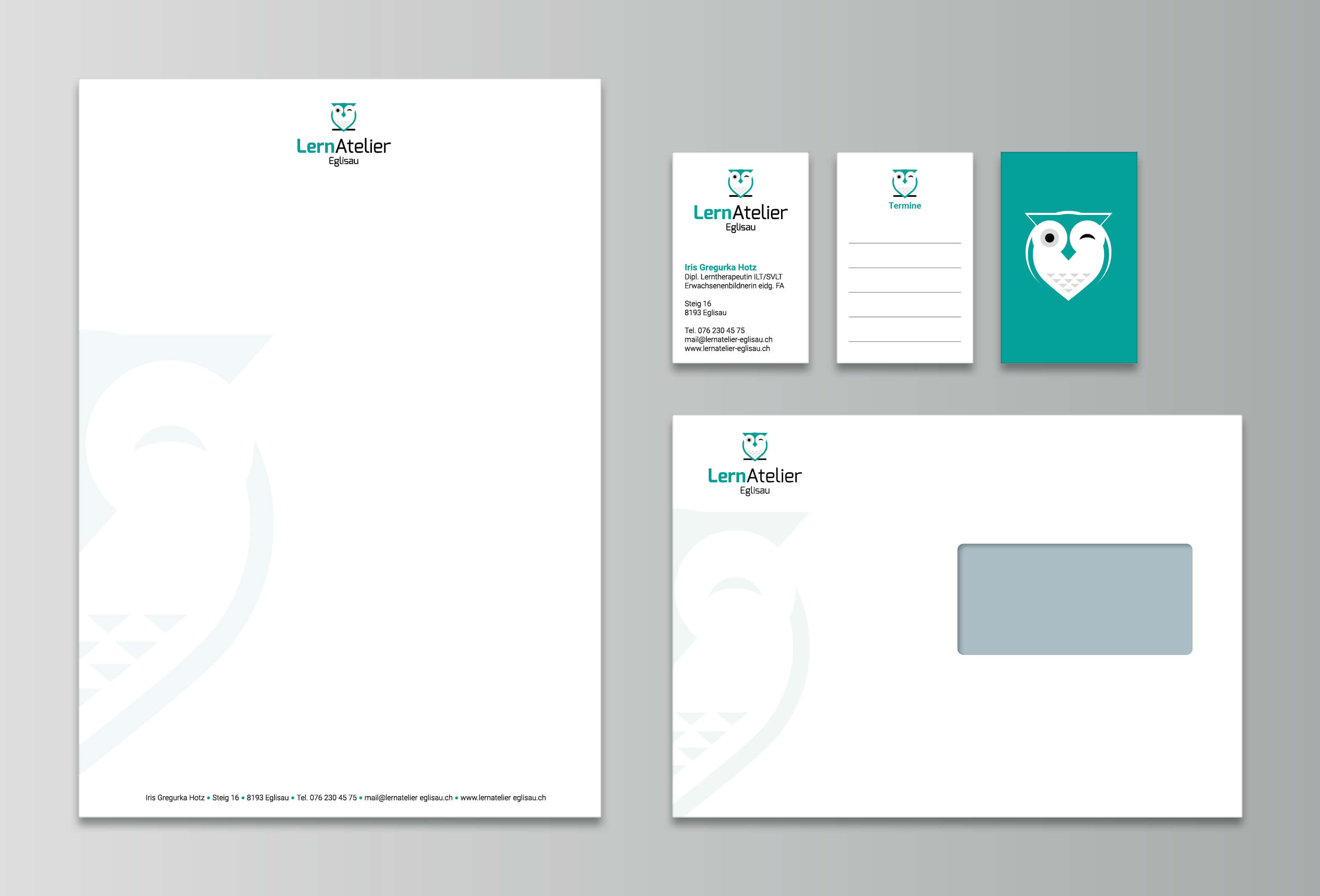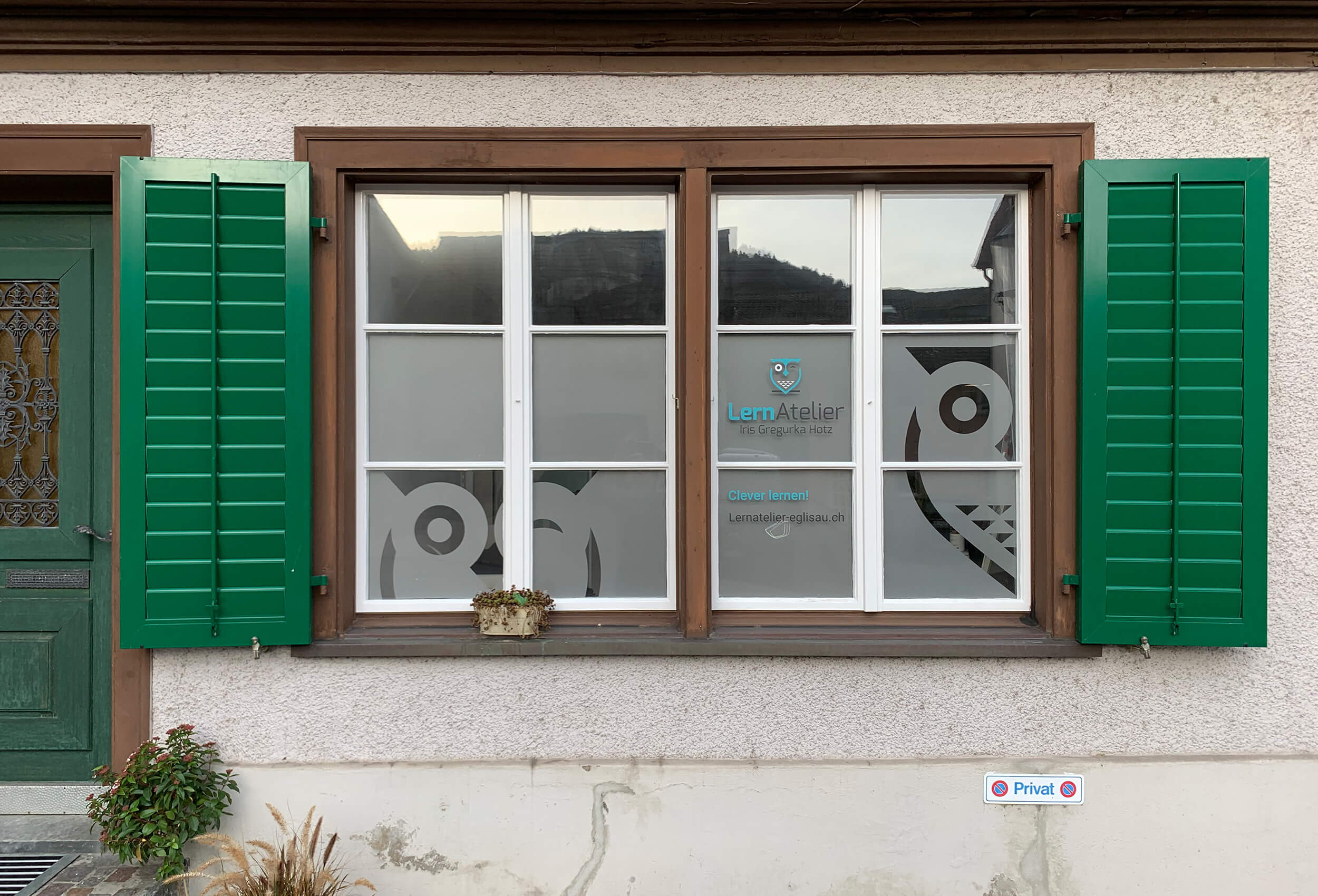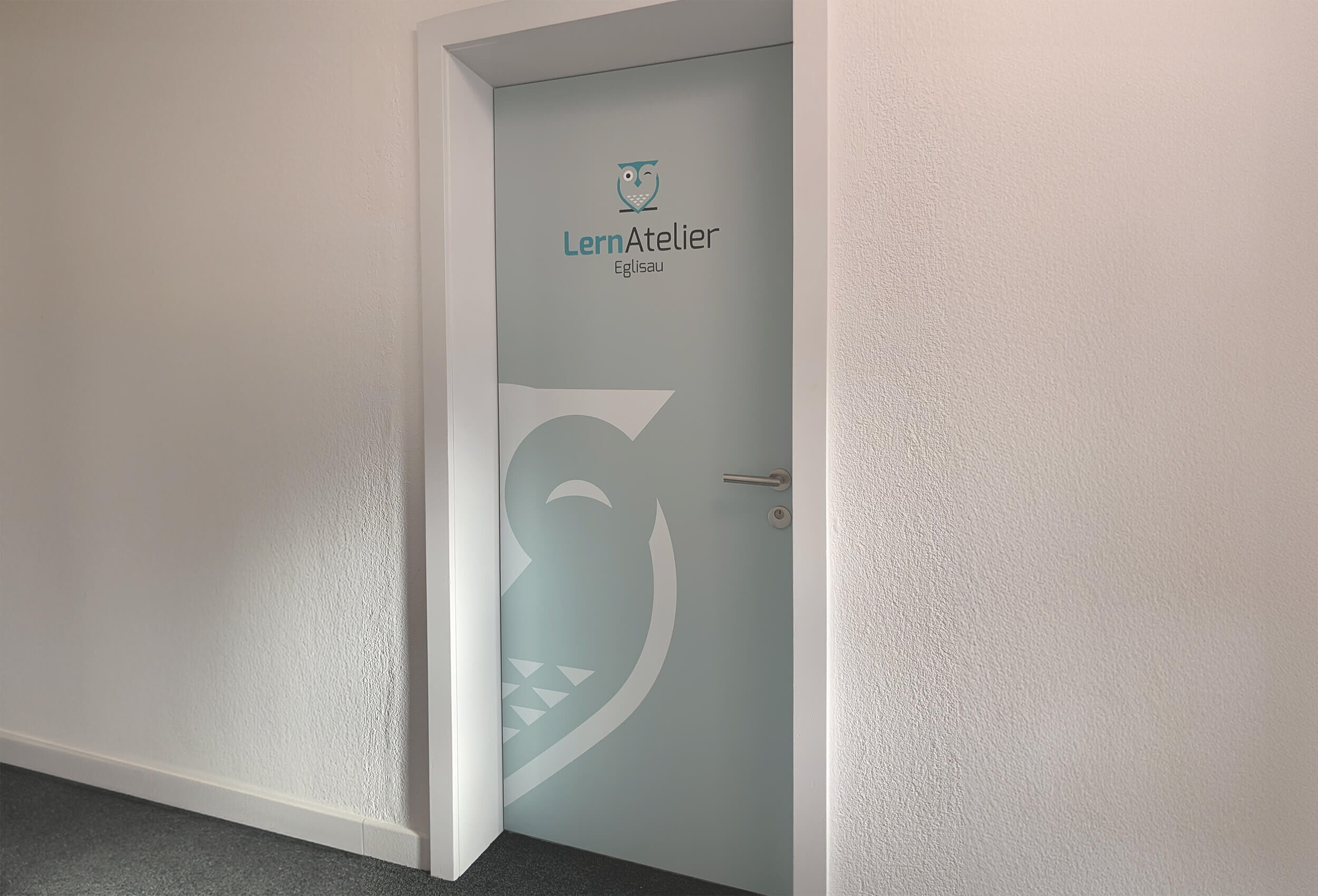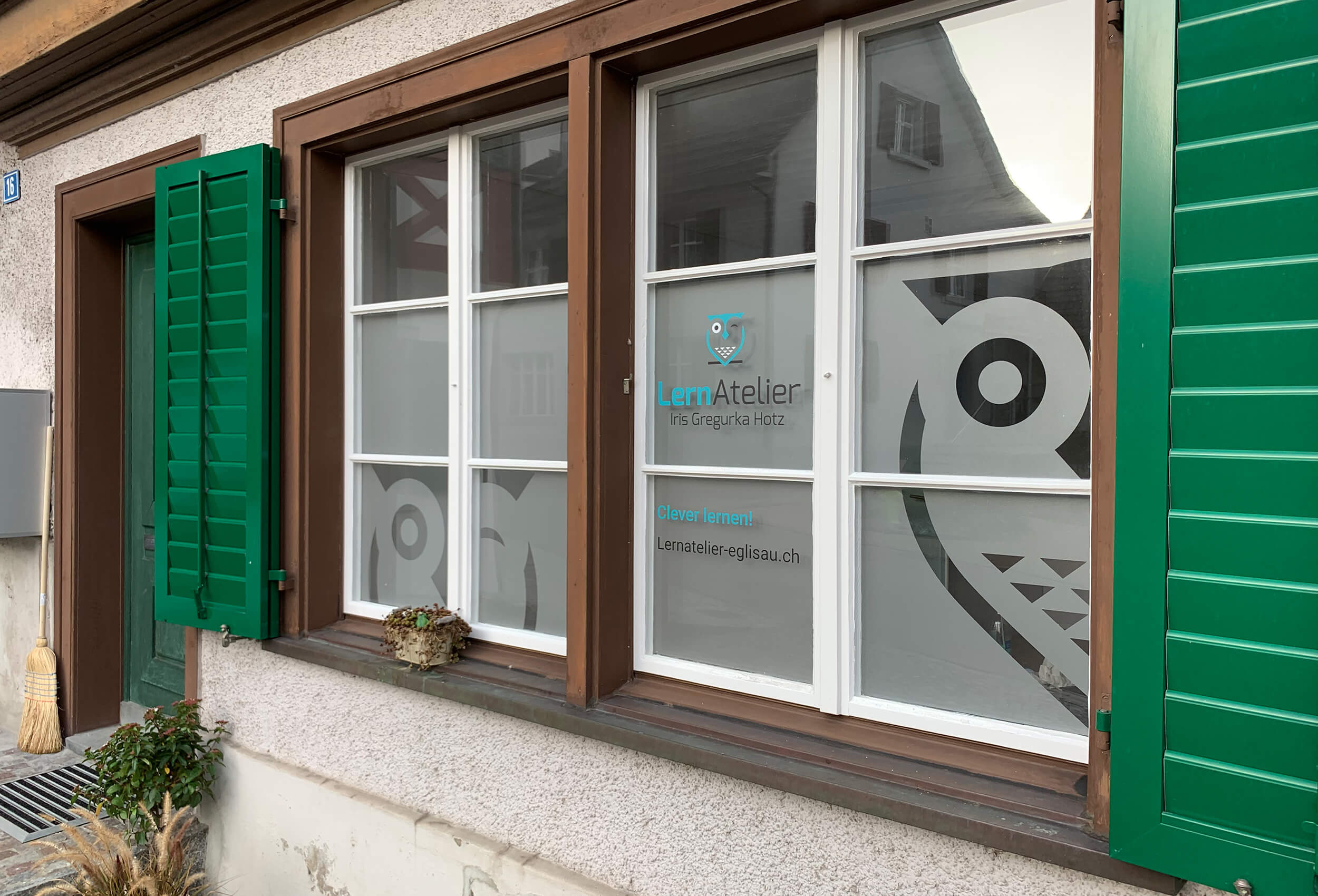 Für das LernAtelier in Eglisau wurden in kurzer Zeit ein ansprechendes Logo und die passende Gebäudebeschriftung entworfen.