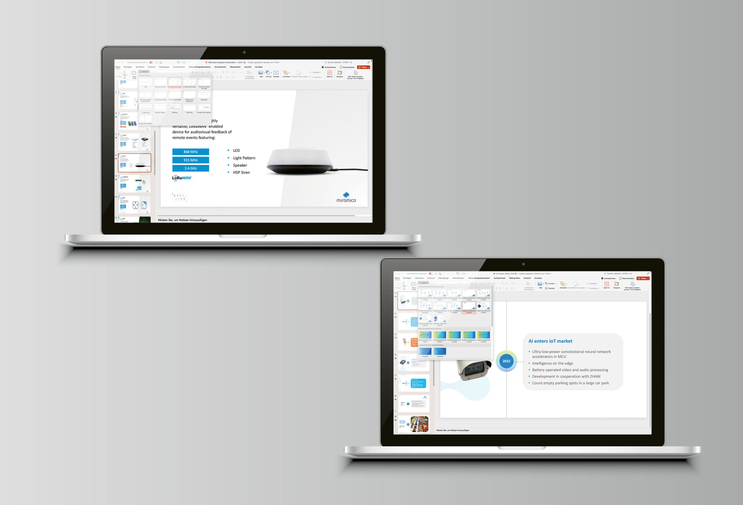 Ein grosser Fokus meiner Arbeit bei Miromico AG sind dynamische Powerpoint-Vorlagen und Präsentationen für das Team.